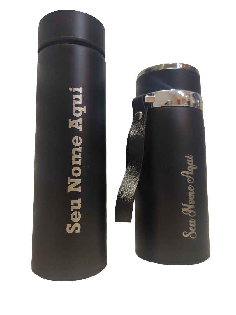(Opção: A) - Garrafa Térmica Personalizada 500ml Squeeze Com Termômetro Digital